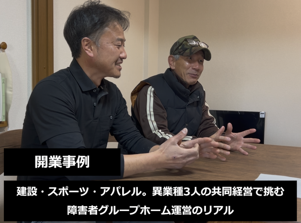職種柄、各地域をまわっている中で空き家の現状を知ることが多く見る事があります。そんな中、福祉に関心があり現在は就労継続支援A型事業を運営していて、利用者のご家族様から障がい者GHの必要性を知りグループホームの可能性に気づき参入。初期費用をほぼかけることなく1棟目を開業。そのオープン前から早速、入居希望者が殺到し即満室となる。現在もいくつかのビジネスと並行しながら、障害者向けグループホームを2棟運営中。